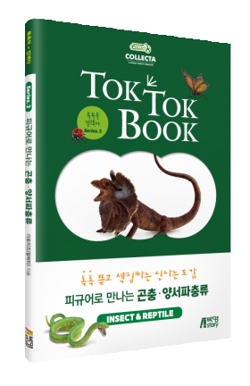 신나는 톡톡북(TOK TOK Book)과 컬렉타(COLLECTA)의 과학적인 피규어가 만났어요. 두 번째도서 곤충?양서파충류(INSECT&REPTILE)에는 ‘곤충, 양서류, 파충류’ 24종의 신기한 모습과 유익한 이야기가 담겨있어요. 아직 글을 모르는 친구들도 오디오북 QR코드를 찍으면 모두 모두 책을 즐길 수 있어요. 그리고 모양을 따라 종이를 톡! 톡! 뜯어내고, 컬렉타 피규어를 보며 쓱~ 쓱~ 색칠하면 나만의 자연 속 세상이 완성됩니다.