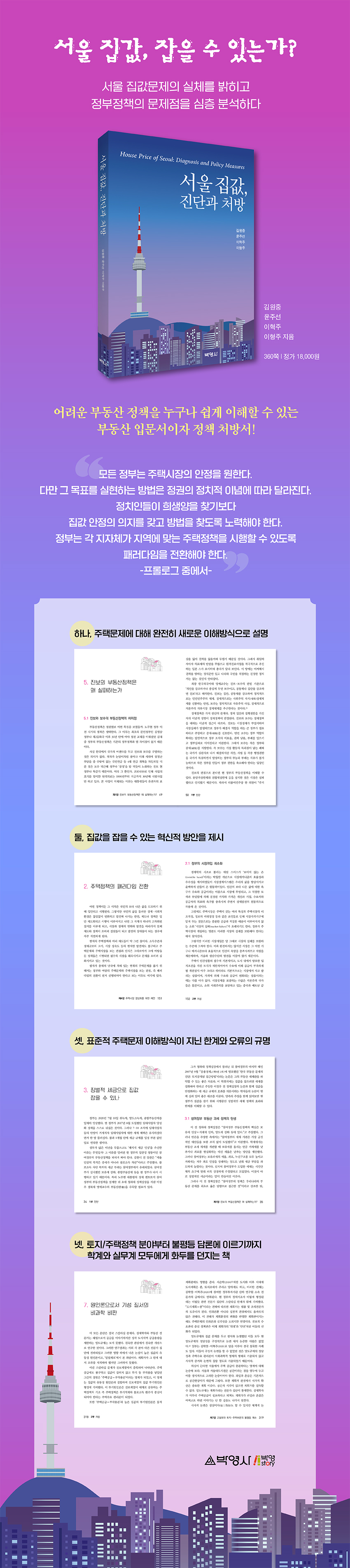 암 덩어리를 잘라내기 위해 칼을 잘못 대면 암 덩어리가 전신으로 퍼지듯, 주택정책을 내놓을수록 집값이 폭등하는, 치유할 수 없는 수준으로 이르게 한데는, 이 분야 전문가로서 책임감도 있다는 이심전심에서 “서울 집값, 진단과 처방”이라는 이름으로 책을 내기로 하였다. 그러나 각 장 필자들의 견해를 모두 하나로 녹이기에는 시간도 짧았고, 열정도 부족했기에 미흡한 부분이 있음을 현명한 독자들이 이해해 줄 것이라 믿는다.